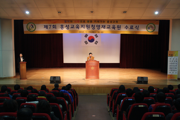 홍성교육지원청(교육장 박익현)은 지난 달 26일, 홍성문화원에서 제7회 영재교육원 수료식을 개최했다. 지난해 3월에 입학해, 1년 동안 총156시간의 영재 수업을 받은 76명의 교육원생에게 수료증과 표창장을 수여했다.