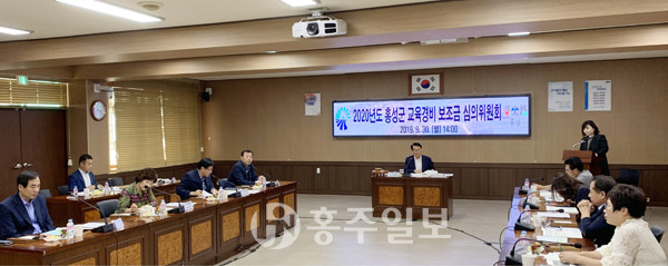 지난달 30일 홍성군청 회의실에서 열린 교육경비 심의위원회에서는 심의위원 9명이 참석해 초등 및 중학교 교육경비 해외영어캠프, 창의과학 융합캠프 운영 외 21건, 고등학교 심화학습, 원어민 보조강사 지원 외 15건, 대응투자 사업 3건에 대한 심의를 완료했다.