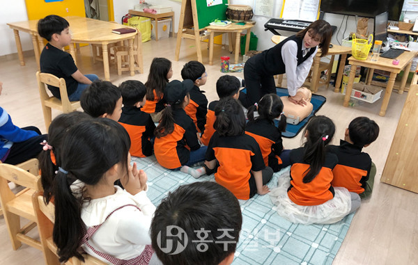 홍성소방서(서장 유현근)는 지난 15일 응급처치 집중 홍보 기간을 맞이해 내포 글로벌유치원 119소년단원들을 대상으로 심폐소생술 교육을 실시했다. 이번 교육은 심혈관질환의 사망 및 급성 심장정지 발생이 증가하는 환절기가 다가옴에 따라 응급처치의 중요성을 널리 알리고자 추진됐다.