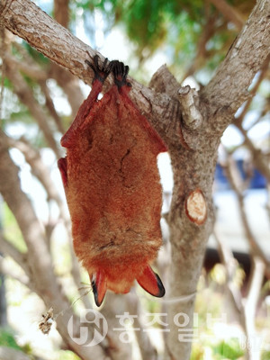 광천읍행정복지센터 앞 문예회관 한 나무에 황금박쥐<사진>가 출몰해 지역민들의 관심과 궁금증을 불러일으키고 있다. 주민들은 최근 돼지열병 및 광천 토굴새우젓·광천김 축제가 취소되는 위축된 지역분위기 속에 길조로 여겨지는 황금박쥐가 출연한 것을 크게 반기는 분위기다.