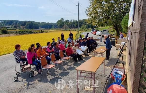 홍동면 반교마을(이장 조권영)은 지난달 28일 주민들의 화합과 소통 기회를 마련하고 풍요로운 농사의 결실을 자축하기 위해 ‘반가운 교류 장터 및 장수 잔치’를 개최했다.<사진>