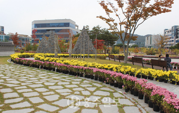 내포애향상가번영회(회장 방영석)은 지난달 말부터 내포신도시 이주자택지 내 애향공원에서 국화 1만 본을 전시하고 있다. 방 회장은 “신도시 미관 조성과 동시에 지역 활성화에 기여하고자 행사를 기획했다”고 말했다.