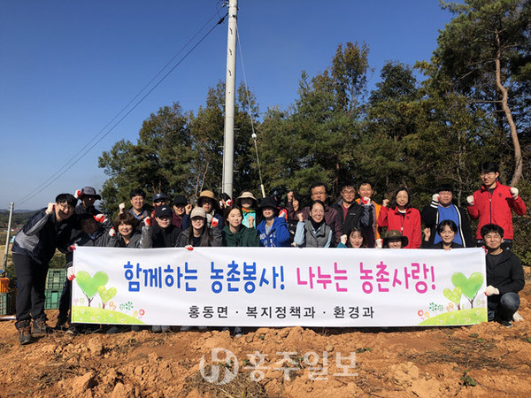 홍동면행정복지센터(면장 조성을)는 지난 30일 홍동면 수란리에 위치한 고구마재배 농가에 방문하여 농촌일손돕기 봉사활동을 실시했다.