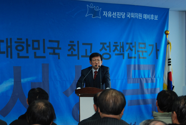 자유선진당 서상목<사진> 예비후보가 지난 8일 예산읍 주교리에서 선거사무소 개소식을 갖고 본격적인 선거운동을 시작했다.