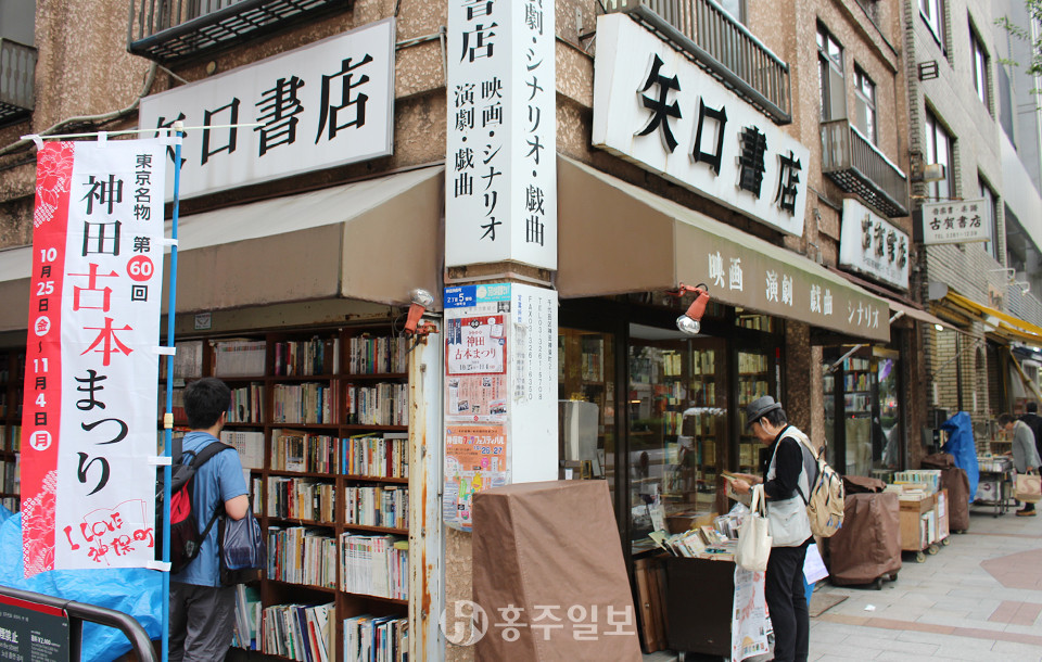일본 도쿄의 간다 진보초(神田神保町)에는 유명한 고서점가와 헌책방이 있다. 올해도 지난 10월 25일부터 11월 4일까지 ‘간다고서축제(神田古本祭り)’가 열렸다. 1960년에 시작된 축제로 올해로 60년째 이어져 오는 축제다. 간다 진보초의 고서점가와 헌책방은 ‘야스쿠니토리(靖国通り)’라는 거리에 있는데 약 500m에 걸쳐 180여 개가 넘는 책방이 있다고 한다. 물론 헌책방만 있는 것이 아니고 이와나미(岩波), 삼성당(三省堂) 등 일본의 유수한 책방이 모두 몰려 있다. 일본 사람들이 ‘세계 어디에서도 찾아볼 수 없다’고 자랑스럽게 선전하는 고서점과 헌책방거리이다. ‘당신의 삶을 변화시킬 한 권의 책을 만날 수 있지 않을까?(あなたの人生を変える一冊との出会いがあるかも?)’라는 말로 독서에의 감성을 자극하면서 축제를 열고 있다.