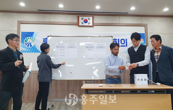 홍동면 주민자치회는 지난 5일까지 주민자치회 임원진 후보자 모집을 진행해 회장직에 3명, 감사직에 1명의 후보자가 신청했으며, 결선투표제 형태로 선거를 실시<사진>한 결과 회장직에는 주정모 위원, 감사직에는 정재정 위원이 당선돼 임원진을 구성했다.