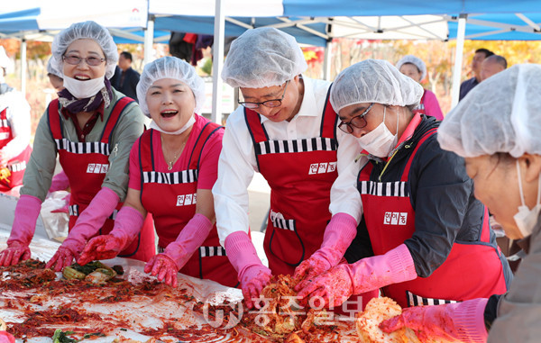 양승조 지사는 이 자리에서 여성농업인들과 함께 김장을 담그며 이웃들을 위한 김장 나눔 행사를 준비한 여성농업인 도연합회 회원에게 감사의 인사를 전했다.