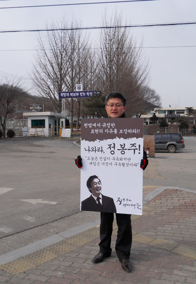 홍성교도소에 수감된 정봉주 전 의원 석방을 촉구하는 릴레이 1인 시위가 연일 이어지고 있다.