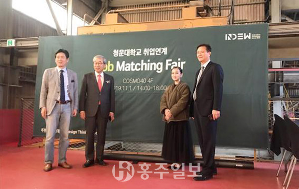 청운대학교(총장 이우종)는 지난달 31일 ‘인천 코스모40’에서 열린 ‘2019인천국제디자인위크’ 행사장 4층에서 청운대 Design Thinking Center(센터장 박두경) 및 취업연계중점대학지원센터 주관으로 2019년 청운대 동계방학 취업연계장학사업 운영을 위한 ‘청운대학교 2019 취업연계 잡매칭페어 행사’를 개최했다.<사진>