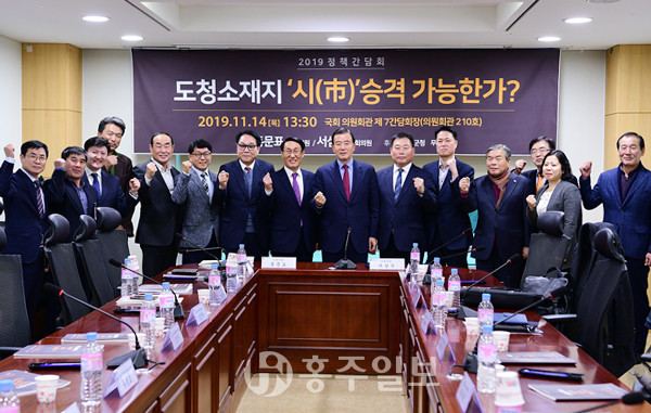 국회의원 회관에서 ‘도청 소재지 시 승격 가능한가?’라는 주제로 정책간담회를 개최해 홍성·무안 양군 담당 과장이 시 승격 입장발표자로 나서 필요성의 당위성을 역설하고 공동협력방안을 논의하는 시간을 가진 것.