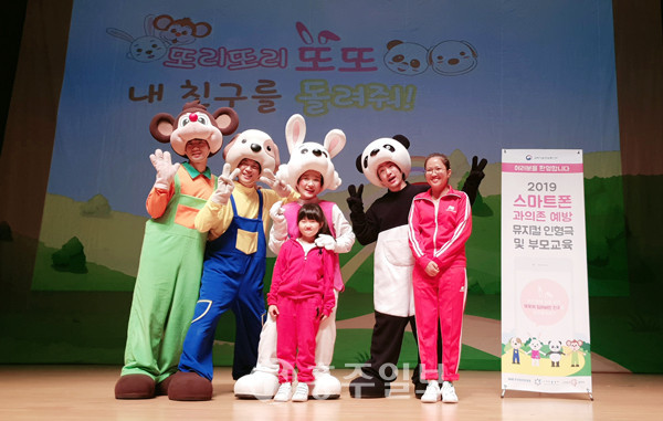 충남스마트쉼센터(소장 최명옥)는 지난 9일 홍주문화회관에서 부모와 아이가 150여 명이 참여한 가운데 ‘2019 스마트폰 과의존 예방 뮤지컬 인형극 및 부모교육’을 실시했다.<사진>