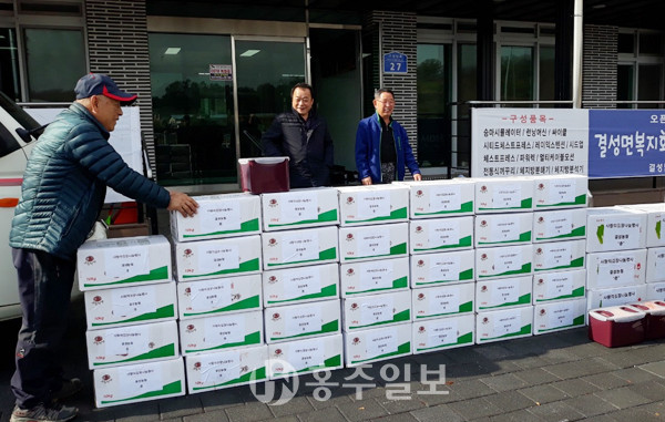 결성농업협동조합(조합장 이천범)이 지난 15일 결성면복지회관에서 김장값 폭등으로 인해 어려움을 겪고 있는 조합원을 포함한 각 마을의 독거노인 등 도움이 필요한 가정에 불우이웃 돕기 행사로 100여 상자의 김장 김치를 전달했다.<사진>