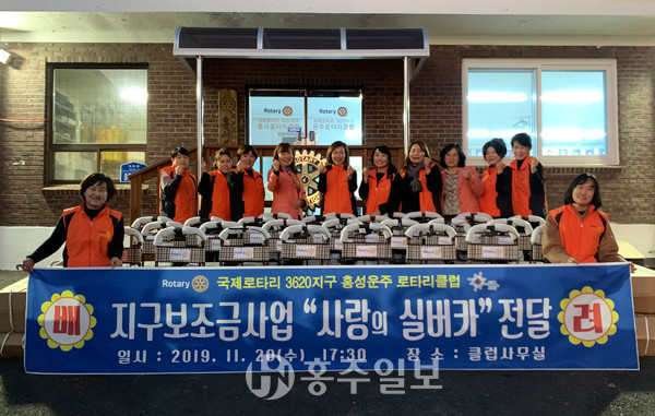 홍성운주로타리클럽(회장 박선화)은 지난달 20일 갈산면 동산리에 위치한 클럽사무실에서 지역 어르신들에게 공급할 실버카 30여 대를 전달하는 행사를 실시했다. 한편 홍성운주로타리클럽은 매달 5일 결손가정 등에 반찬을 전달하는 봉사를 이어오고 있다.