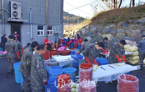 지난 19일 홍성군지역사회보장협의체 여성가족분과(분과장 전양숙)는 위원 30여 명과 1789부대 장병 10여 명 등이 참여한 가운데 1200개의 무로 동치미 120통(1통당 20kg)을 담갔다.