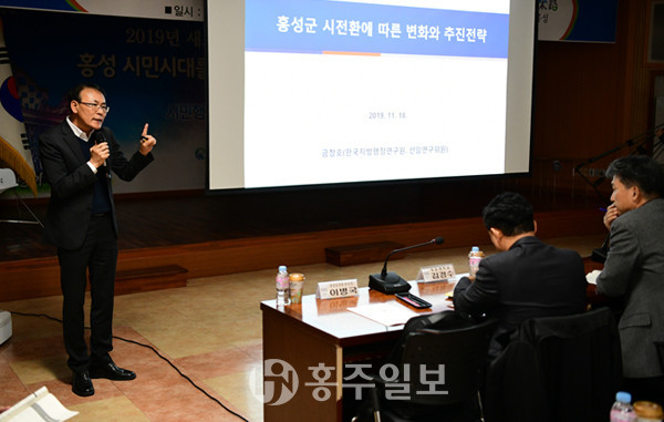 이날 특강 강사로 초청된 금 박사는 1단계 충족요건 변경전략과 2단계 지역주민 설득전략, 3단계 시 전환 발전 전략의 홍성군 시 전환 3단계 접근 전략을 제시했다.