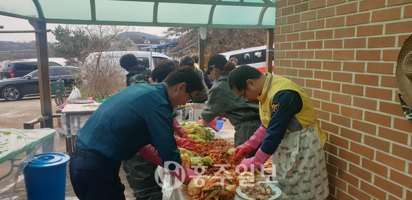 홍성경찰서(서장 김기종) 청렴동아리 나누미 회원들은 지난 27일 홍동면 소재 복지시설인 하늘공동체에서 내포로타리 클럽 회원들과 함께 사랑의 김장봉사활동을 실시했다.