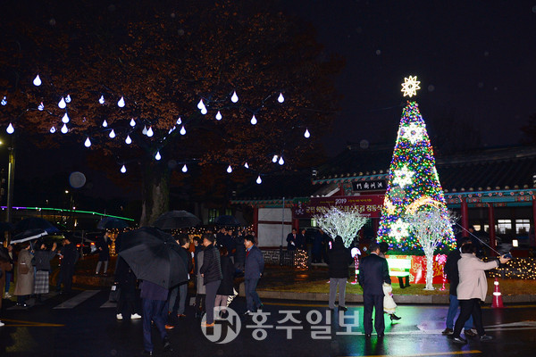 지난 3일 홍주아문에서 성탄트리 점등식 진행해