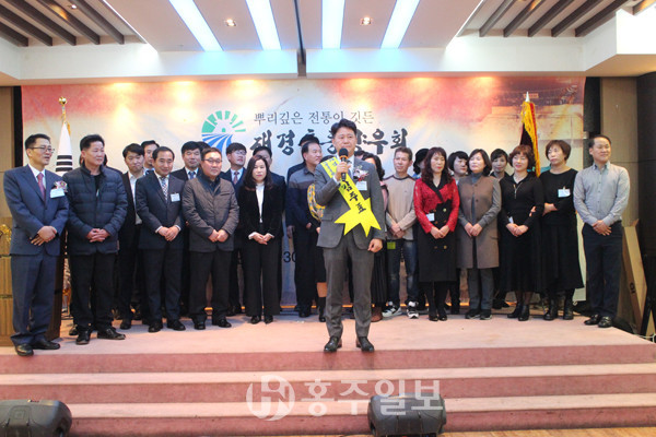 이어 김주표 취임회장은 취임사에서 신임 임원들을 소개하는 시간을 가지며 “홍동향우인들의 가려운 부분은 긁어주고 어려운 부분은 도와주는 회장이 되겠다”고 말하며 “회장의 역할을 잘 해내서 앞으로 100주년, 200주년으로 이어나가는 재경홍동향우회가 될 수 있도록 하겠다”고 다짐했다.