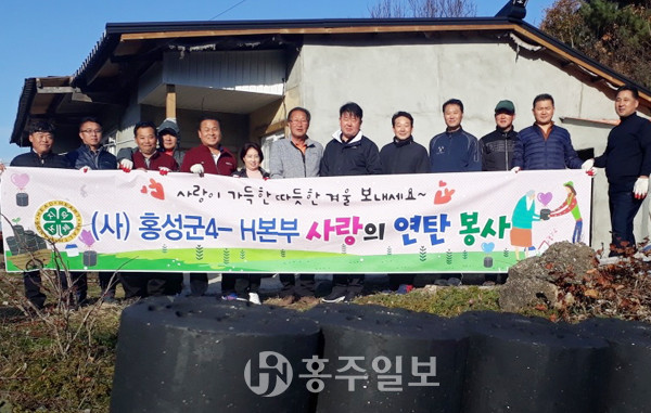 (사)홍성군4-H본부(회장 강성현)는 지난달 30일 회원들과 함께 광천읍 2개 가정을 방문해 300장씩 총 600장의 사랑의 연탄을 전달하는 봉사를 실시했다. 이날 봉사에는 홍성군농업기술센터 윤길선 소장과 (사)충남4-H도본부 김택성 회장이 함께했다.