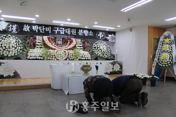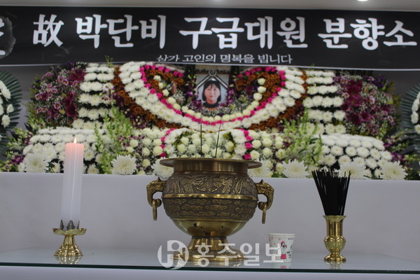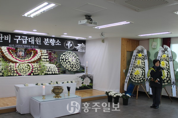 독도해상 소방헬기 추락사고로 유명을 달리한 홍성의 딸 고 박단비 대원(향년 29세)의 분향소가 6일 홍성읍남·여의용소방대(구 소방서) 2층에 설치됐다.