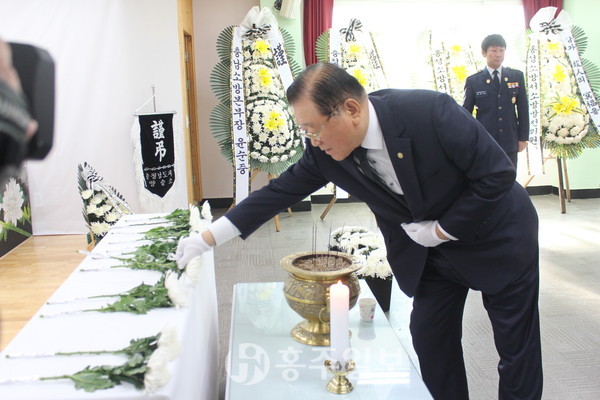 분향소는 남·여 의용소방대 대원들이 자원해서 돌보고 있으며 6일부터 오는 10일까지 운영할 예정이다. 분향 시간은 오전 10시부터 오후 8시까지이고, 마지막 날인 10일은 특별히 오전 9시부터 11시가지 운영된다.