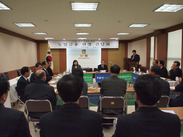 농업·농촌 발전을 위한 ‘농업금융 현장간담회’가 지난 14일 농협중앙회 홍성군지부 2층 회의실에서 농림수산식품부 이상길 1차관과 농협중앙회 각 부서장, 농·축협 조합장을 비롯한 관계자와 양돈사랑영농조합 심원용 대표, 곰이네농장 맹다혜 대표, 일흥목장 채승병 대표 등을 비롯한 농민대표들이 참석한 가운데 진행됐다.