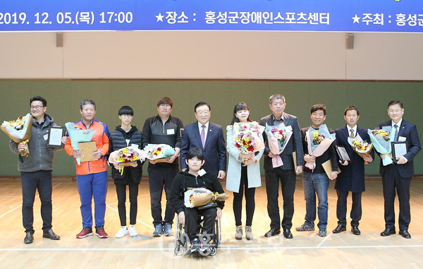 홍성군과 홍성군장애인체육회(회장 김석환)는 지난 5일 홍성군장애인스포츠센터에서 장애인체육인들의 한해를 마무리하는 ‘2019 장애인체육인의 밤’ 행사를 성황리에 개최했다.<사진>