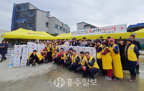 대한적십자사 홍성지구협의회(회장 윤일순)는 지난 6일 통계청봉사회, 혜전대RCY, 홍주중RCY 회원들과 함께 국민건강보험 홍성지사의 후원으로 약 2000포기의 김장김치를 직접 담가 관내 독거어르신과 취약가정에 전달했다.