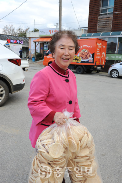 마침 뻥튀기 장사가 와서 사 가지고 가는 길이예요"