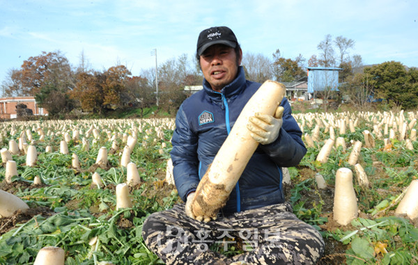 "단무지용으로 쓰는 무예요. 오늘 하루면 다 수확합니다"