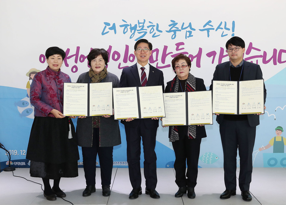 도는 이날 충남여성어업인연합회·충남여성정책개발원·충남어촌특화지원센터와 함께 ‘충남 여성 어업인 육성 활성화 상생 발전 업무 협약’을 체결, 인력 및 정보 교류 등 협력 체계를 구축하고 여성 어업인 관련 시책 발굴을 위한 공동 연구를 추진키로 했다.