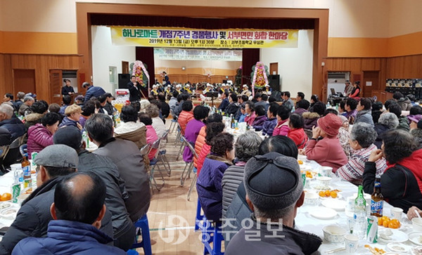 서부농협(조합장 표경덕)은 지난 13일 600여 명의 조합원과 면민이 함께한 가운데 서부농협하나로마트 개점7주년 기념 경품행사와 함께 서부면민 화합한마당 잔치를 열어 화합의 장을 만들었다.<사진>