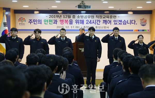 홍성소방서(서장 유현근)는 지난 17일 3층 대회의실에서 청렴한 직장 분위기 조성과 소방 활동 직무 수행능력 강화를 위한 12월 직장교육훈련을 실시했다. 한편, 이날 유 서장이 신규 임용된 직원을 직접 소개하는 시간을 가졌다.