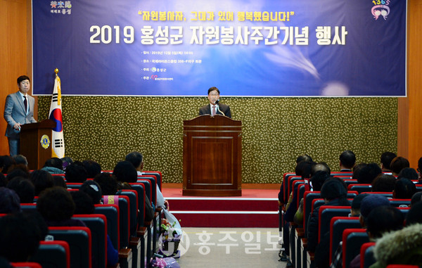 홍성군자원봉사센터(센터장 이동춘)은 지난5일 유관기관장, 자원봉사자 등 200여 명이 참석한 가운데 ‘2019 홍성군 자원봉사주간 기념행사’를 개최했다.<사진>