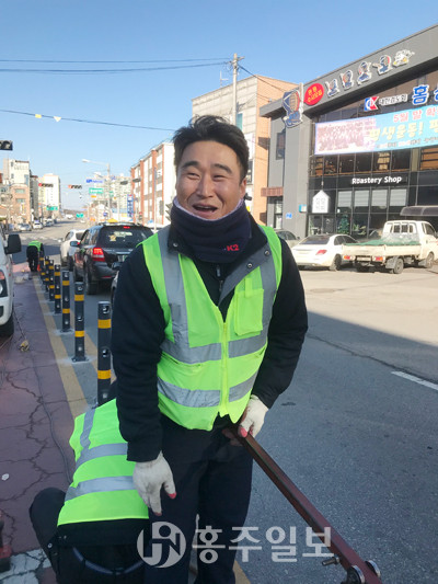 "많이 춥죠. 얼른 따뜻한 난로 앞으로 오세유. 청소하고 금방 퇴근할거에요."