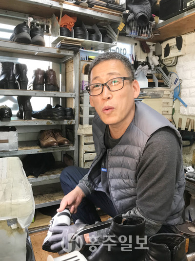"이곳에서 구두수선 한 지 벌써 20년이 넘어가네요. 예전에 비해 손님이 많이 줄었어요."