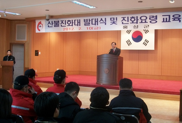 홍성군은 금년 2월 1일부터 5월 15일까지를 봄철 산불조심기간으로 정하고 산불방지대책본부를 운영하고 있다. 지난 10일 오전 10시 군청대강당에서 산불전문예방진화대 및 산불감시원 발대식을 갖고 산불예방활동에 본격적으로 나섰다.