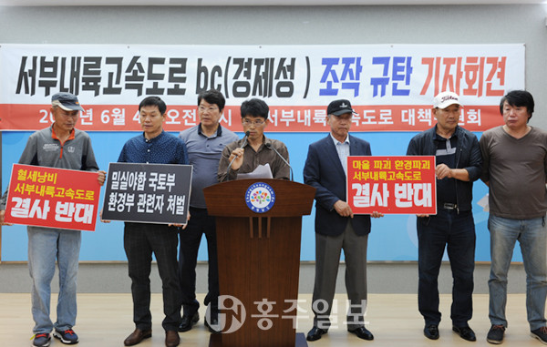 서부내륙고속도로대책위원회(윤중섭 위원장, 이하 대책위)는 지난 4일 충남도청 프레스센터에서 기자회견을 열고 “서부내륙고속도로의 B/C(비용대비 편익)가 조작됐다”고 의혹을 제기하면서 “국민혈세 낭비하는 서부내륙고속도로를 당장 포기해야 한다”고 강하게 주장했다. 증액된 건설 비용을 B/C에 대입하면 그 수치는 최초 1.18에서 0.761로 떨어져 이대로 추진해서는 안되는 사업이다.