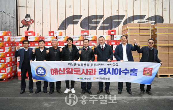 이번에 수출되는 예산황토사과 품종은 부사, 배는 신고이며 러시아 블라디보스톡 대형유통매장에서 판매될 예정으로 러시아 수출은 올해 들어 여섯 번째다. 군은 올해 러시아로 모두 117.5t의 예산황토사과를 수출했으며, 배는 8.1t으로 첫 수출 길에 올라 러시아 수출시장의 품목 확대에 힘입어 수출 순항이 지속될 전망이다.