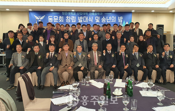 청운대학교(총장 이우종) 산업대학 건축공학과는 19일 오후 6시 송도 컨벤시아에서 ‘청운대학교 산업대학 건축공학과 동문회 창립 발대식 및 송년의 밤’을 성황리에 개최했다고 밝혔다.<사진>