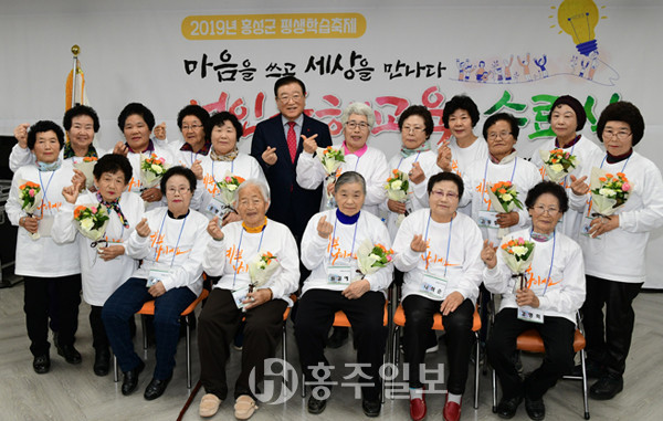 홍성군 성인문해교육 학습자 62명은 지난 19일 홍성도서관에서 문해교육 수료식을 가졌다.<사진>