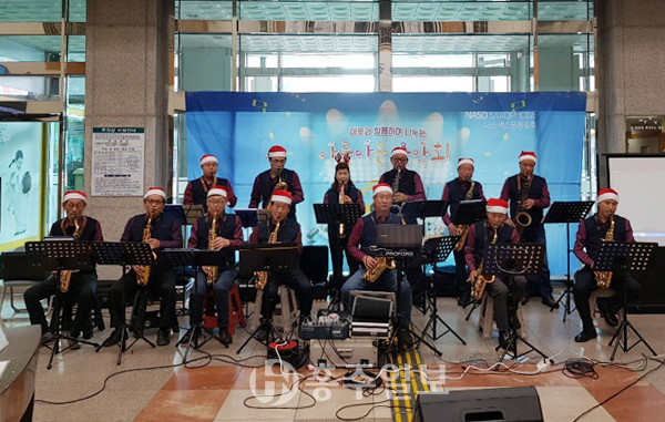 동호회 ‘나소색소폰’(회장 임창영)은 지난 18일 홍성의료원(원장 박래경) 본관 1층 로비에서 ‘이웃과 함께하며 나누는, 작은 음악회’를 개최했다.<사진>