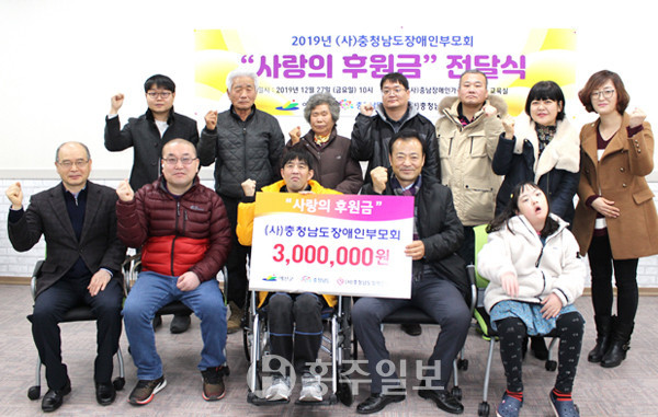 (사)충청남도장애인부모회(회장 전재하)는 지난해 12월 27일 기관 관계자·후원금 수여 대상자 등 15여 명이 참석한 가운데 예산군 내 장애인 가정을 위한 사랑의 후원금 전달식을 진행했다.