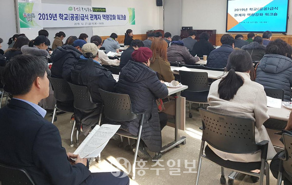 홍성군학교급식지원센터에서는 지난해 12월 27일 학교 전통체험관에서 학교급식운영 위원회 위원, 영양사, 생산농가, 유통업체 등 학교급식 관계자 120여 명이 모여 상호 소통하고 교육·학교급식 발전방안을 위한 워크숍를 가졌다.
