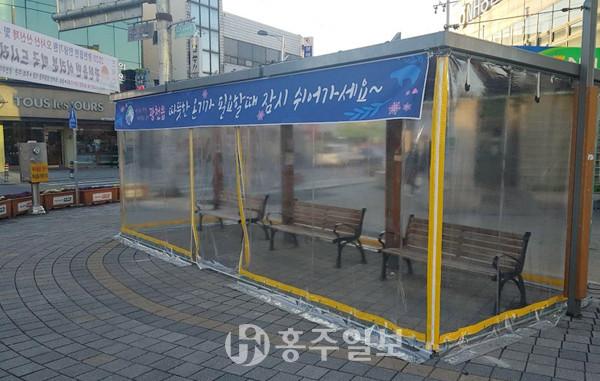 광천읍(읍장 신주철)은 지난해 12월 27일 광천오거리 승강장에 온실텐트를 설치했다.<사진>
