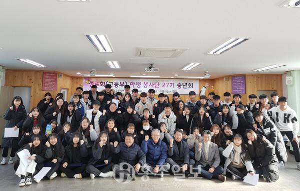홍성군청소년자원봉사단 청로회(회장 이철이) 학생들이 지난해 12월 28일 홍성읍의용소방대에 모여 송년회를 열었다.<사진>