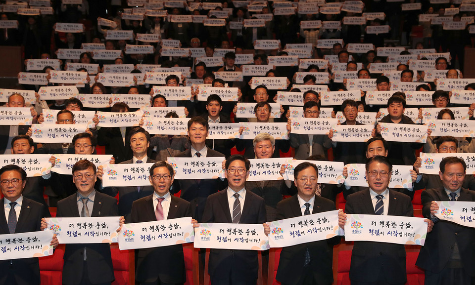 양승조 지사는 “2020년에는 도민이 직접 체감하고 공감할 수 있도록 모든 공직자가 전국에서 가장 청렴한 충남을 만들기 위해 경주하겠다”며 “이를 위해 도민과 함께 적극적인 민관협력 청렴 거버넌스를 구축·운영하겠다”고 말했다.