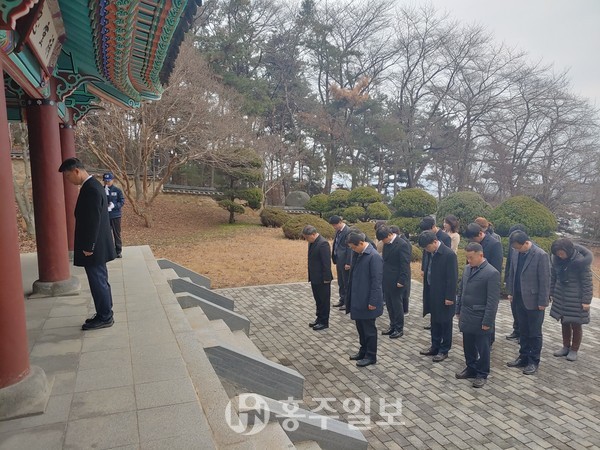 홍성교육지원청(교육장 주도연)은 새해를 맞아 2일 홍주의사총과 충령사 참배를 시작으로 기해년 새해 업무를 시작했다.<사진>