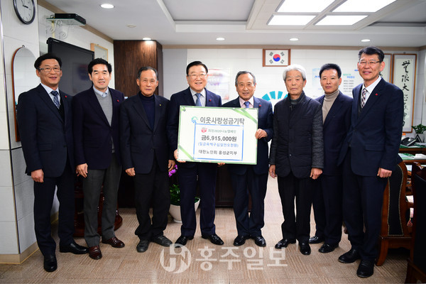 대한노인회 홍성군지회(지회장 조화원)는 지난해 12월 27일 희망 2020 나눔캠페인의 일환으로 성금 691만5000원을 홍성군에 기탁했다.<사진>