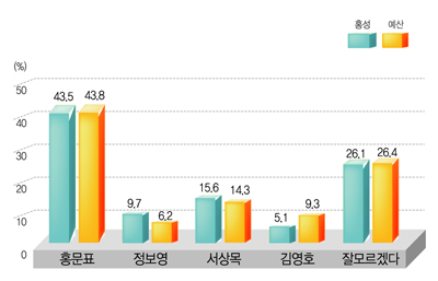 홍성 홍문표 43.5%·서상목 15.6% ·정보영 9.7%·김영호 5.1% 순